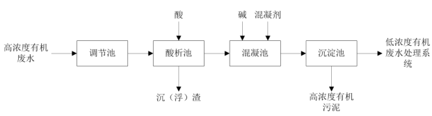 4) 酸析后的高濃度有機廢水可采用生化處理,也可根據情況采用化學氧化處理;
